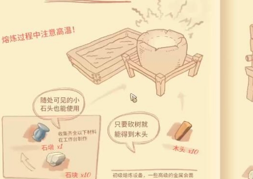 随后,玩家们将石头、石墩、木材全部放入建设台就可以顺利的得到一个石炉。控制角色将石炉举起来,这一阶段玩家们就需要找到一个合适的位置来摆放石炉,建议各位将功能性的设施全部集中在一起,这样就能够让玩家们更有效的去操作各种道具的合成以及制作,整体效率会发生较大的变化。